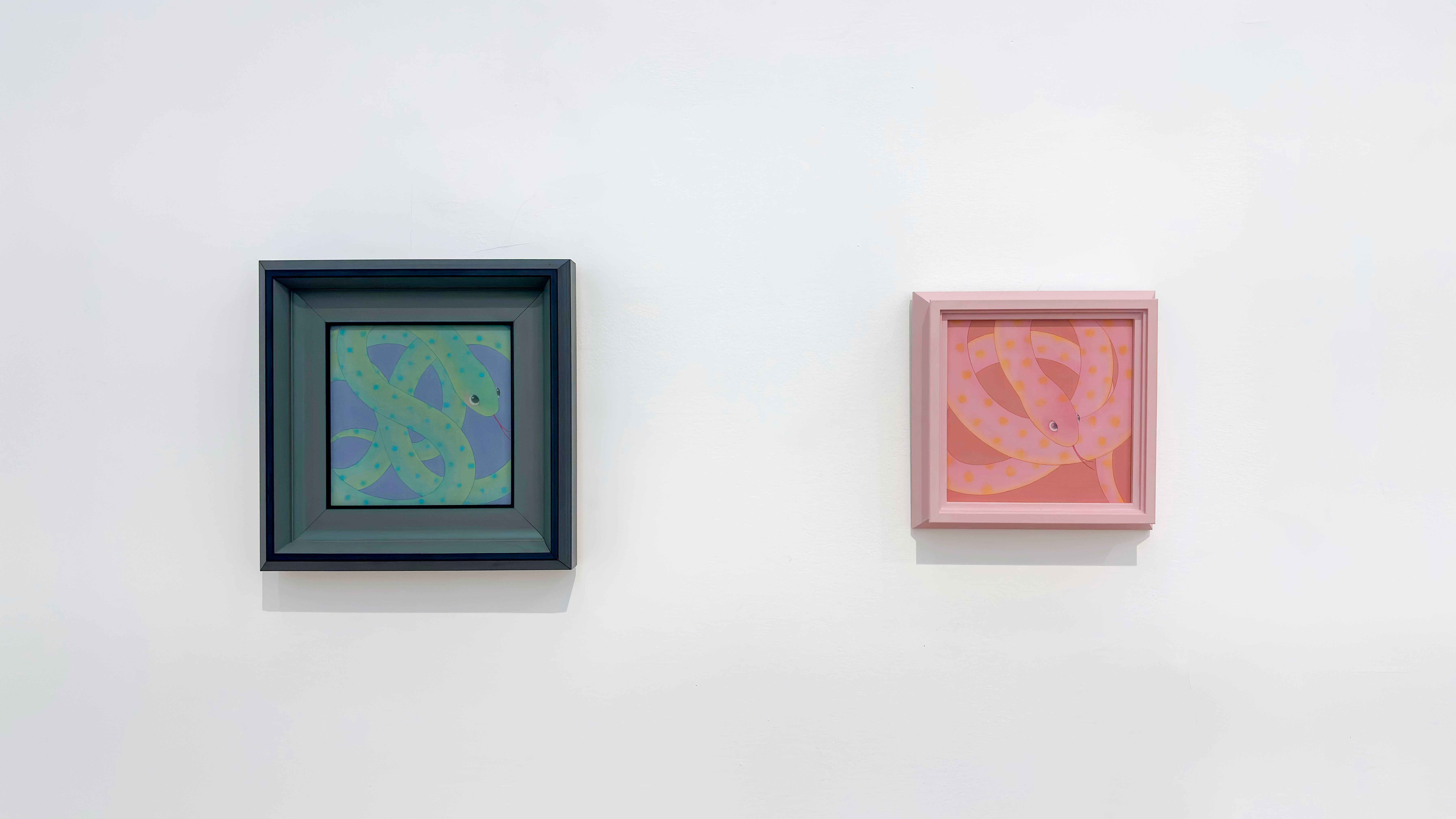 (左)花蛇08 Flower Snake 08 绢本设色 Colour on silk 19.5×19.5cm 2025