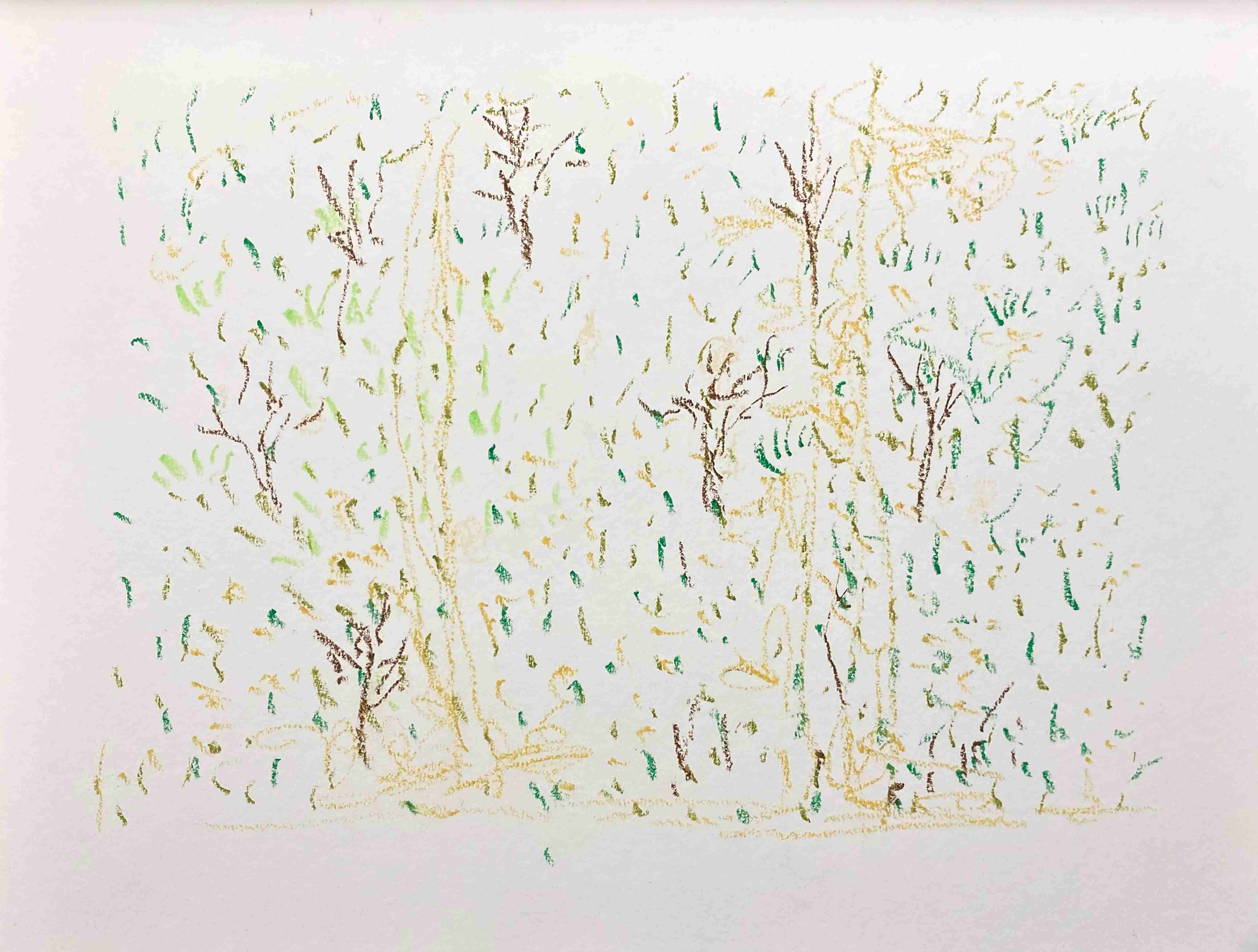 25 曹应斌 读夜晚湖边的树 纸上油画棒 23x30cm 2021_8 -