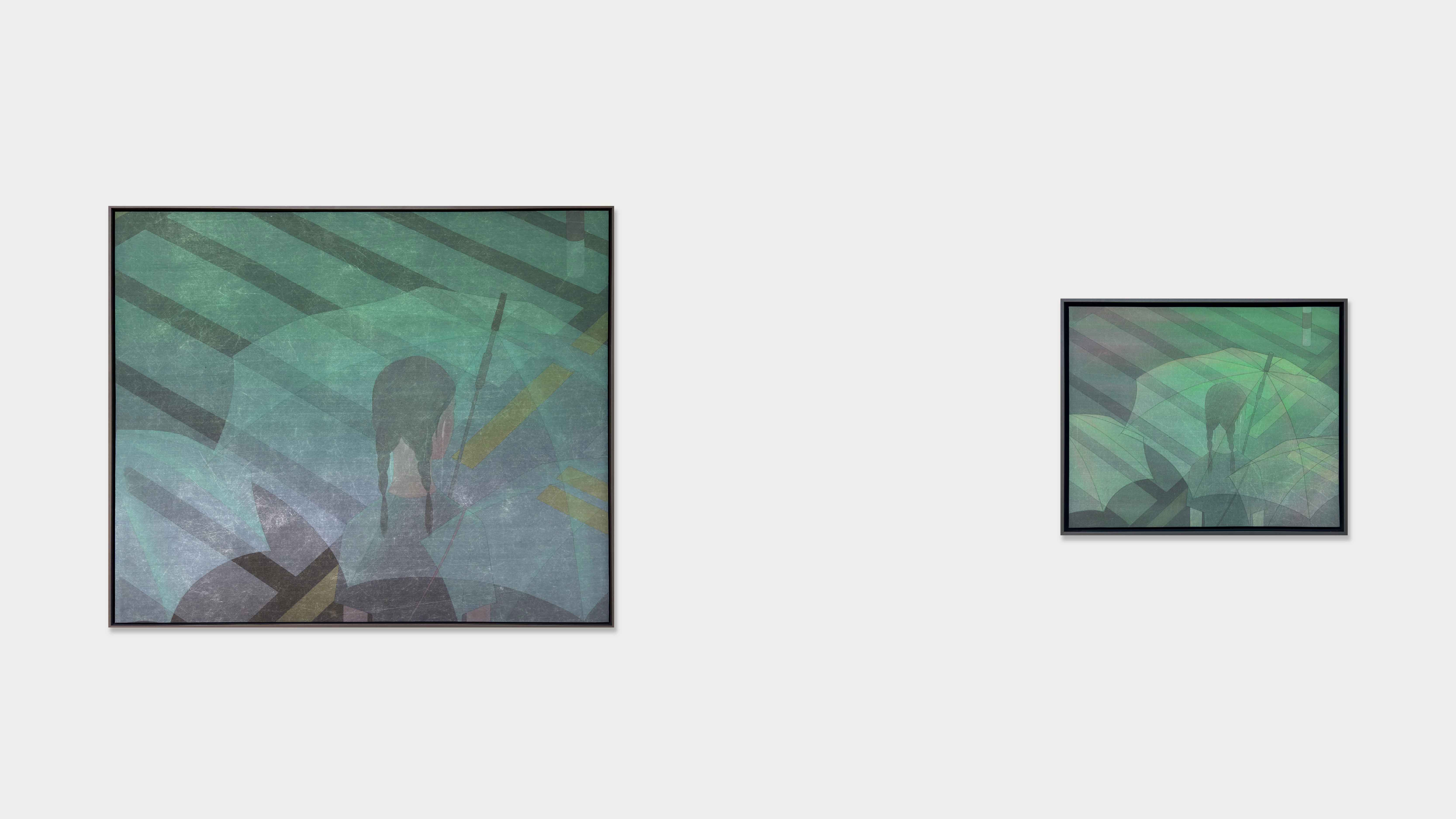 (左)花家地南街8号8 Huajiadi South Street, 2024绢本设色 Colour on silk64.5×77.5cm(右)花家地南街8号8 Huajiadi South Street, 2025绢本设色 Colour on silk36×44cm -