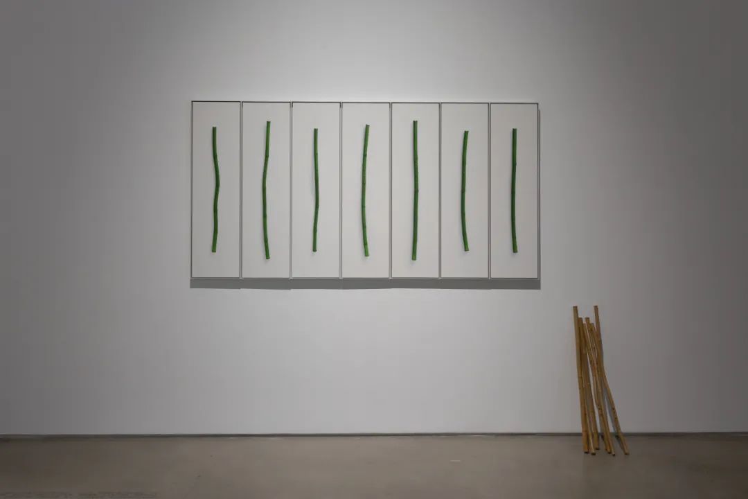 金声 Sound of Silence 7支新鲜竹制箫、摄影 7 Xiaos made of fresh bamboo、photography ≈Φ2.5cm, h78.5, 86.5, 77.5, 83, 88, 76, 78.5cm 30×110cm×7 2020