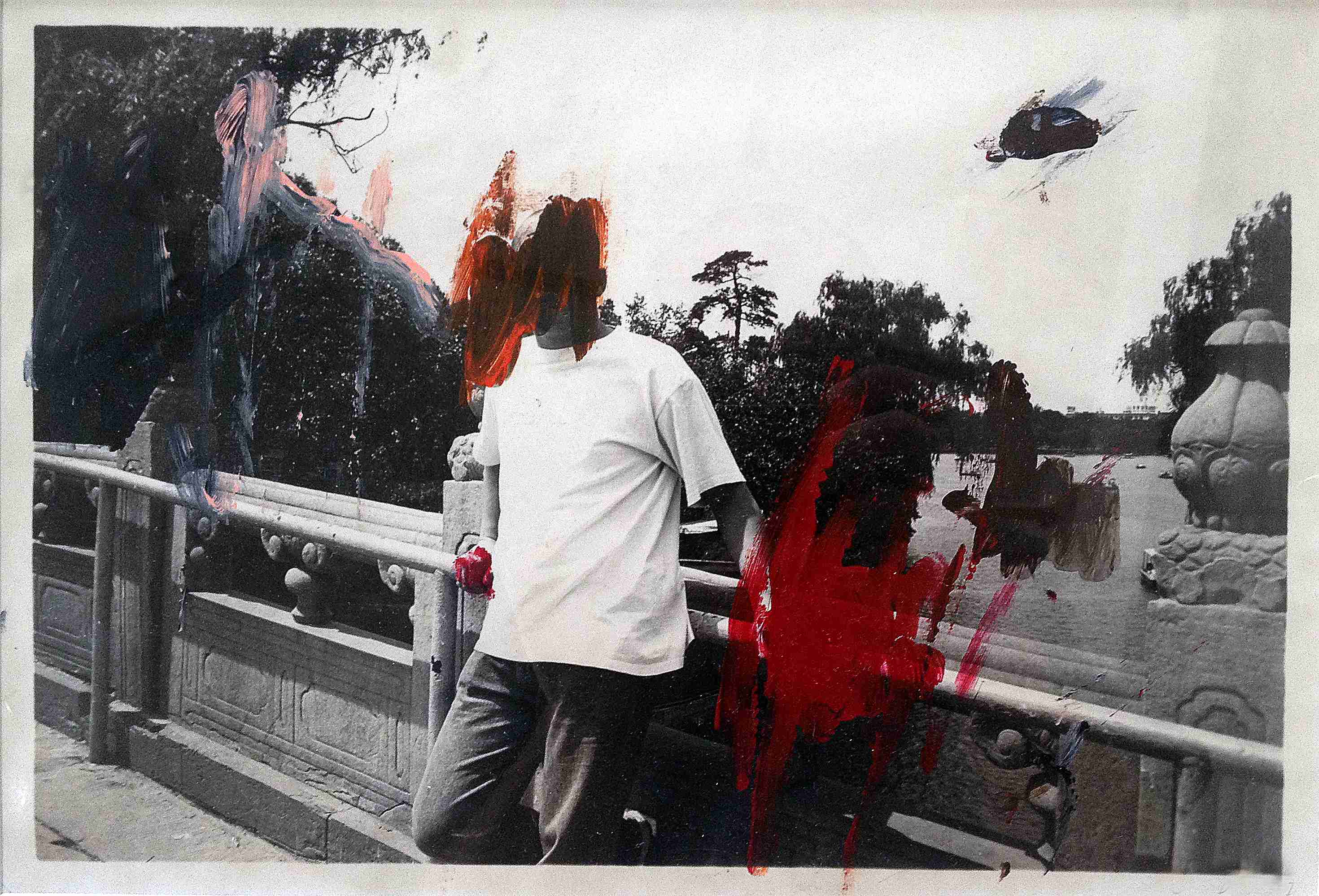 蔡东东 在桥上 19×28cm 照片上绘画 银盐照片 丙烯 2015