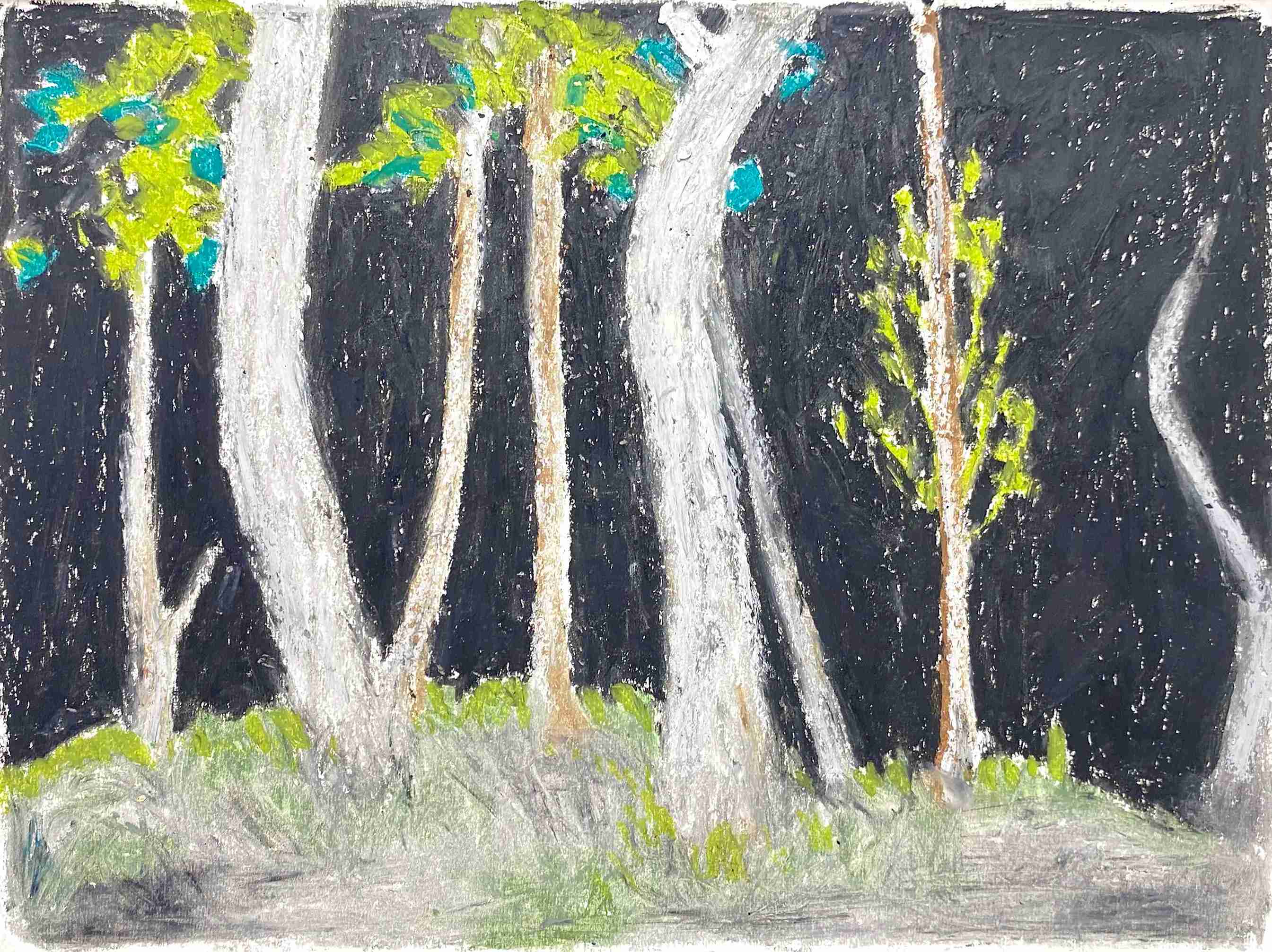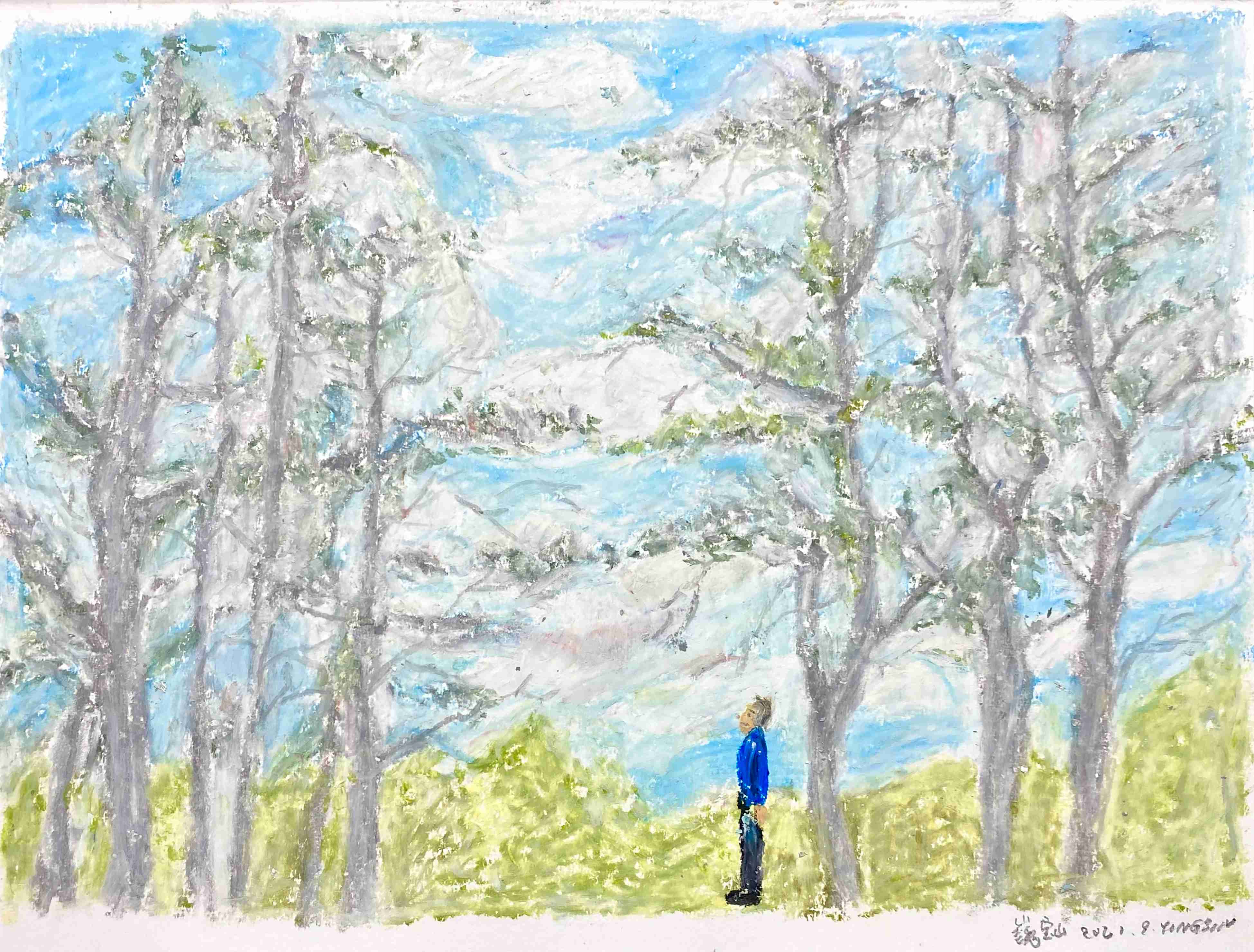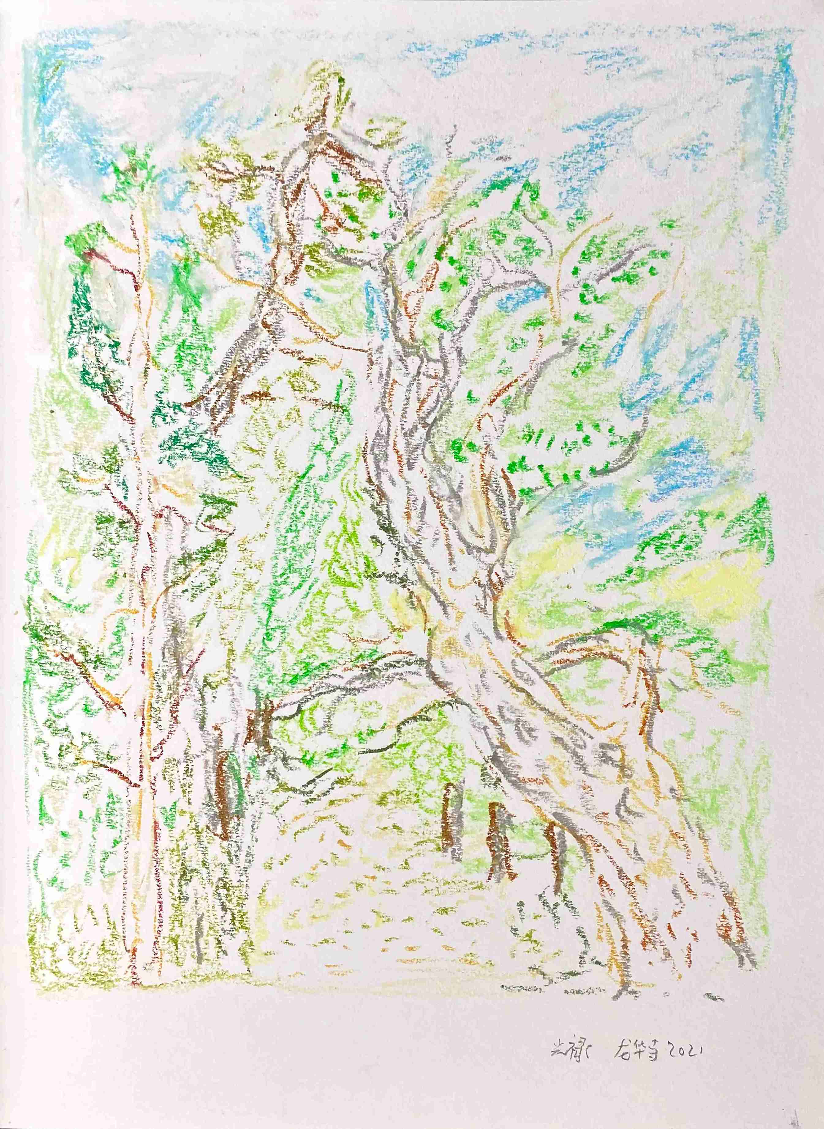 25 曹应斌 读夜晚湖边的树 纸上油画棒 23x30cm 2021_8 -
