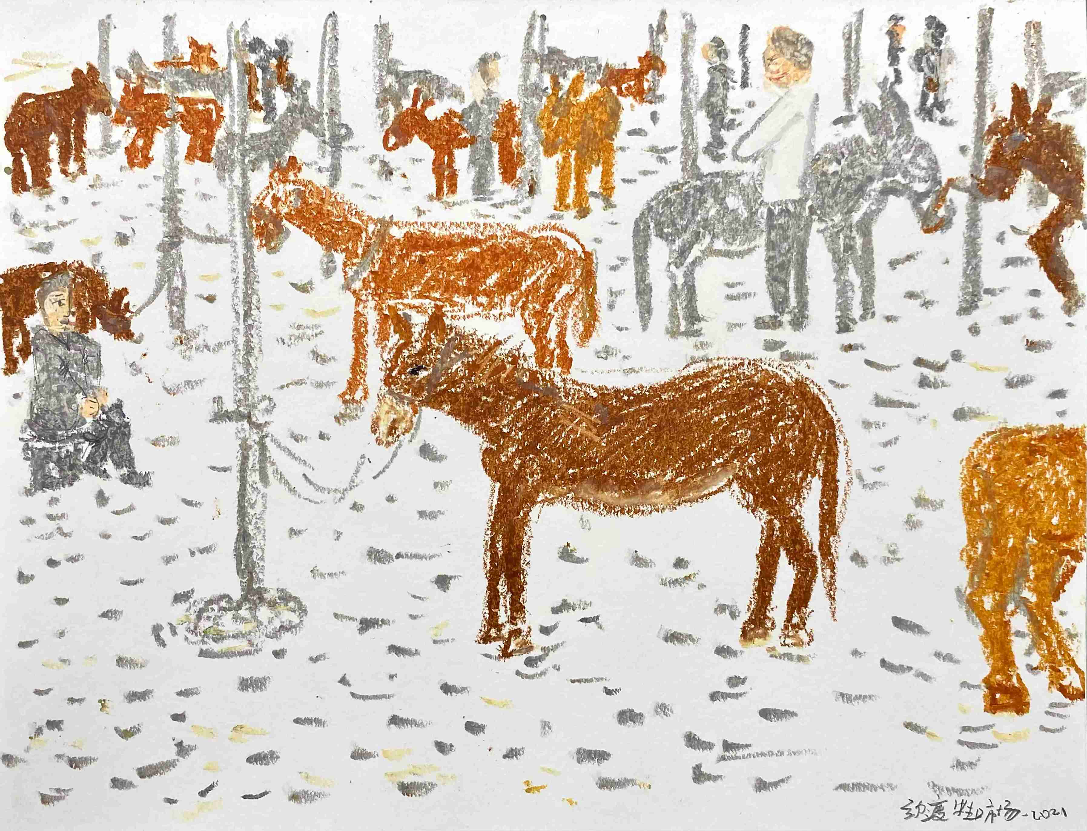 10 曹应斌 弥渡牲口市场 纸上油画棒 23 x 30cm 2021_4 -