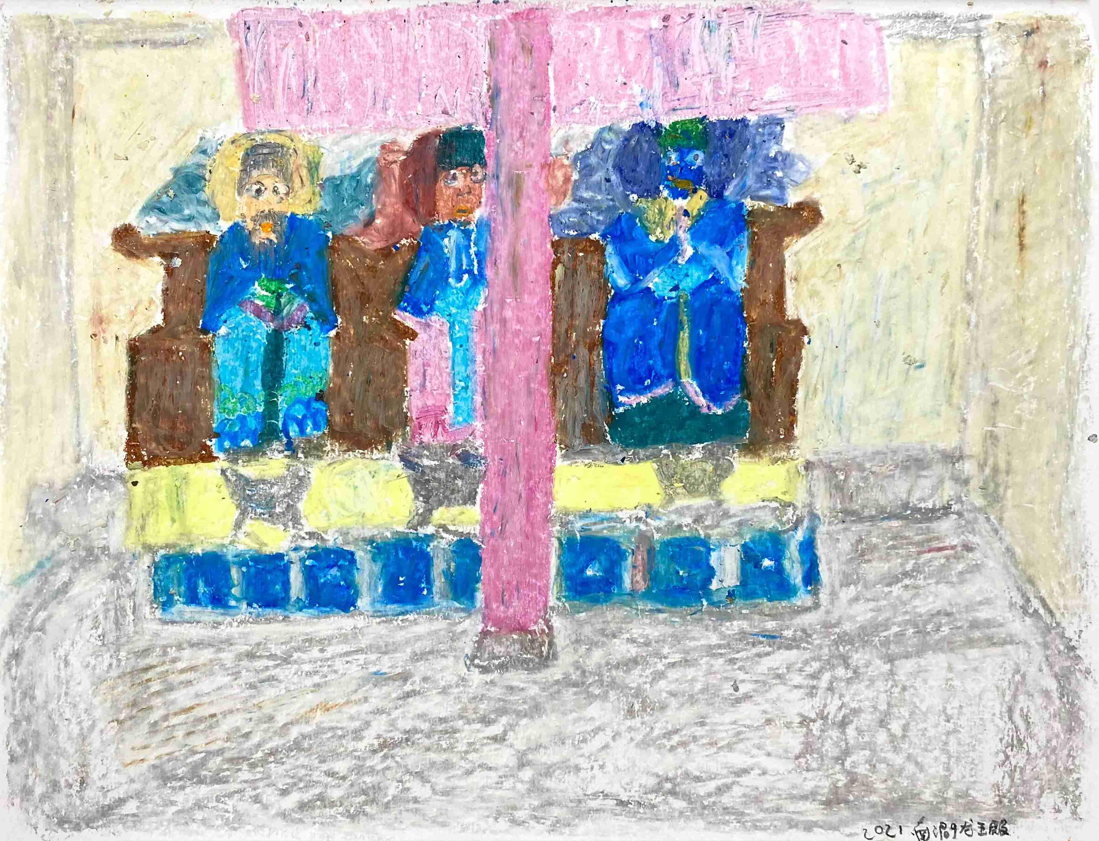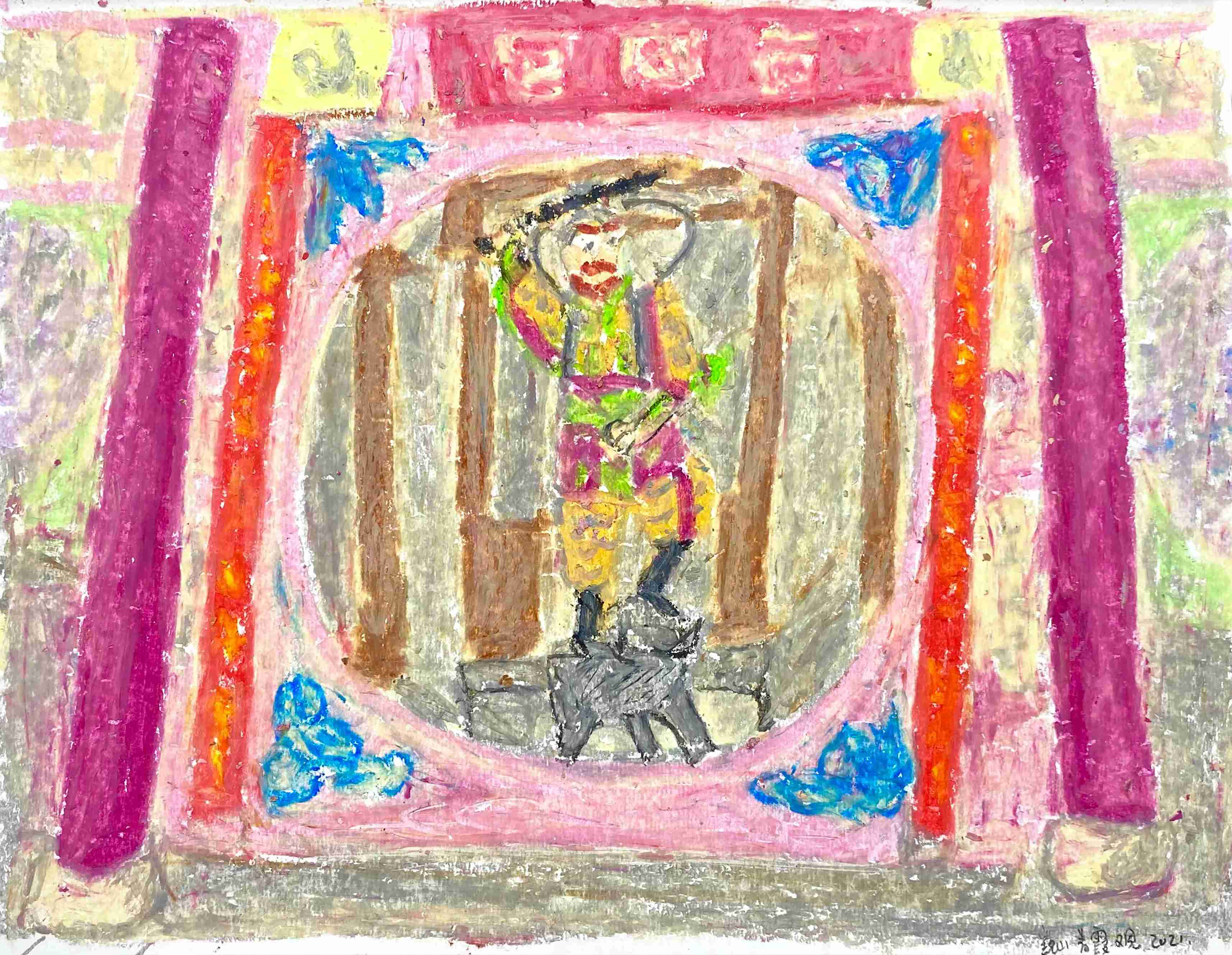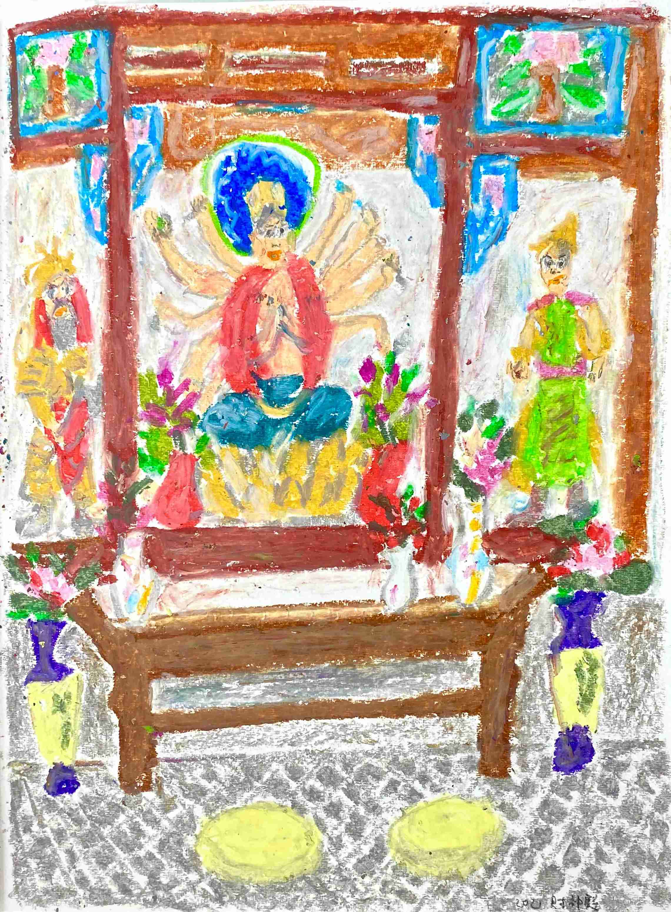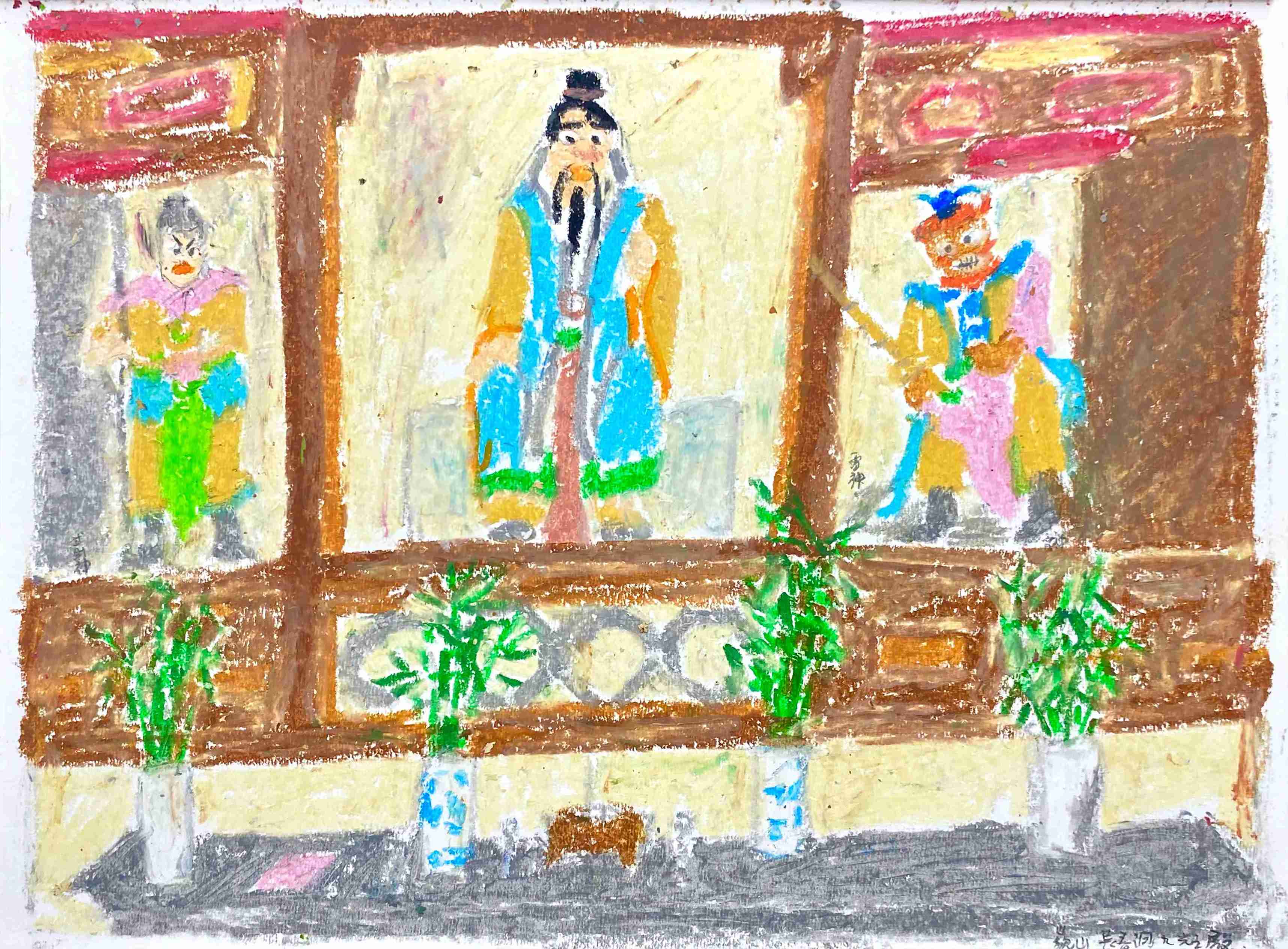 19 曹应斌 大小寺财神殿 纸上油画棒 23x30cm 2021_2 -