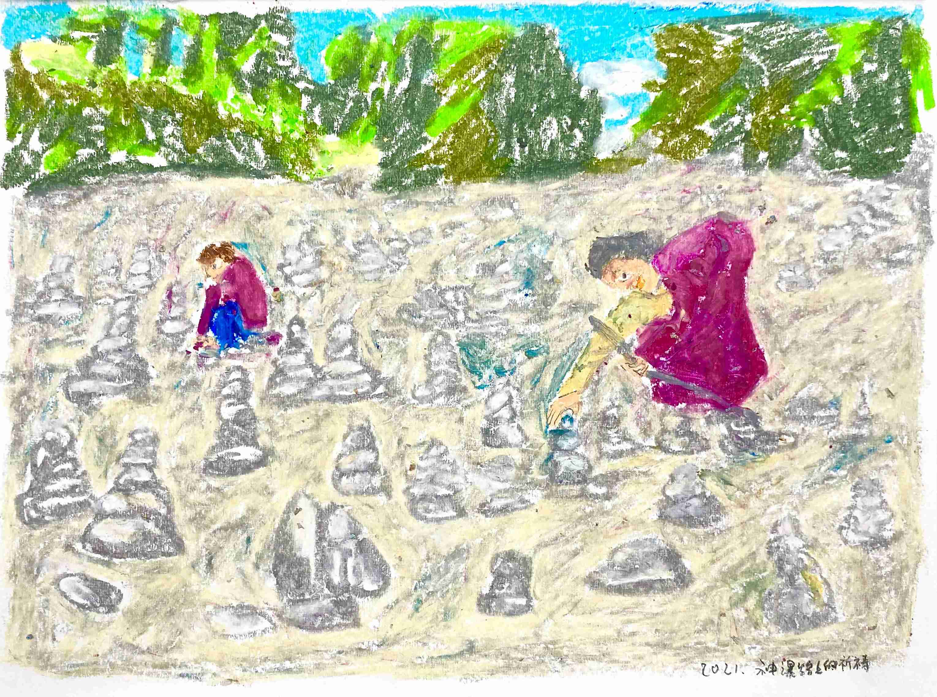 21 曹应斌 祈福的玛尼堆 纸上油画棒 23x30cm 2021_4 -