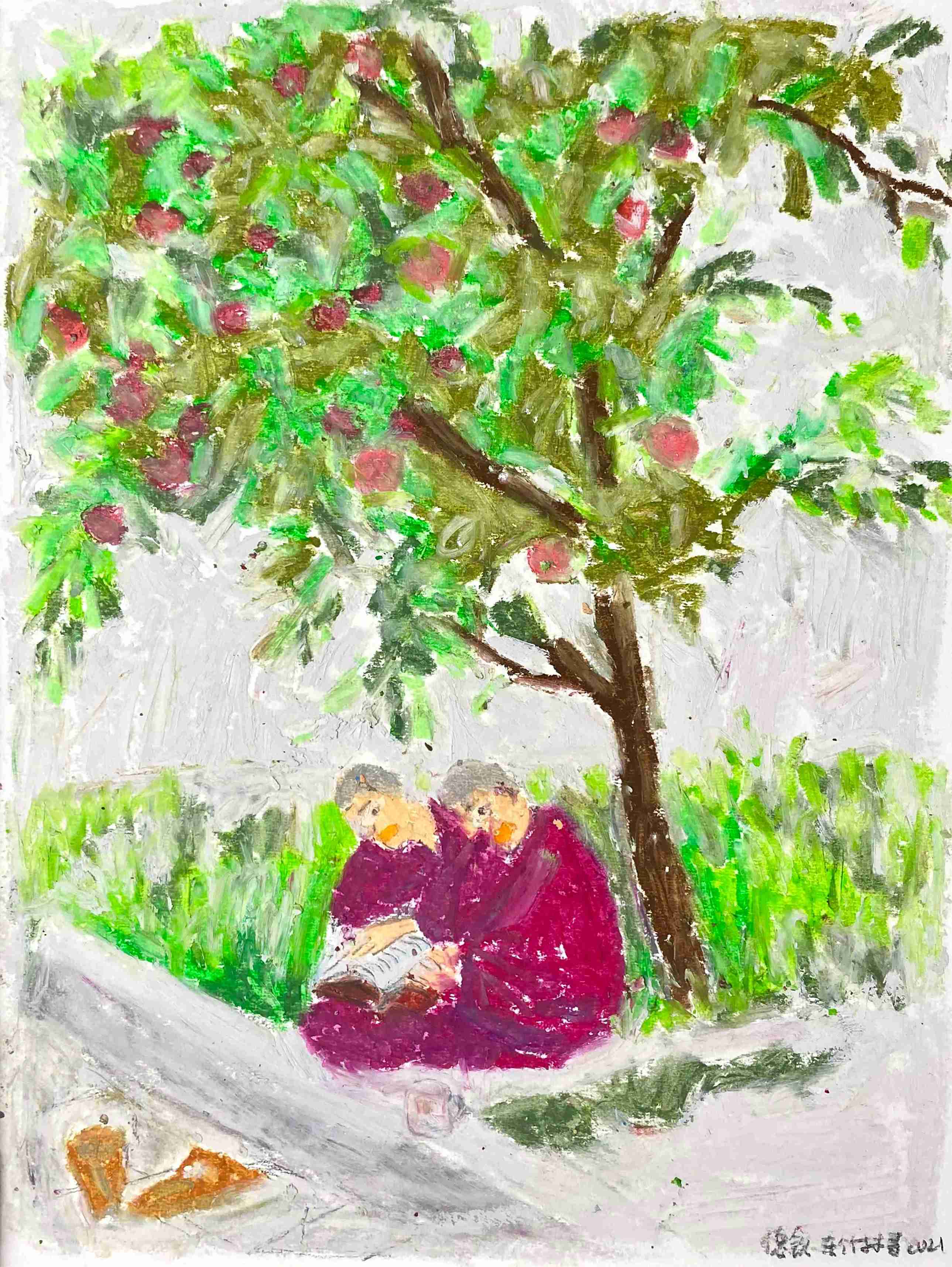 23 曹应斌 读经 纸上油画棒 23x30cm 2021_6 -