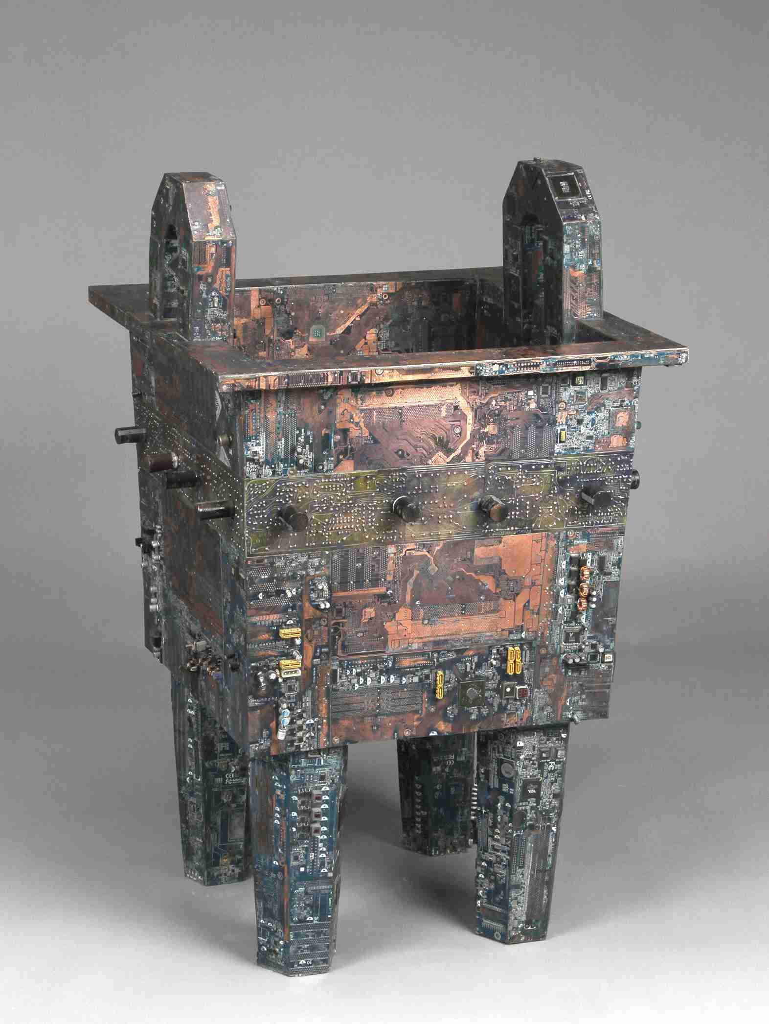 #NO.22 (乳钉纹方鼎) 2013 尺寸100×62.5×60.8cm 电脑主板 免钉胶 铜钉 木板_5