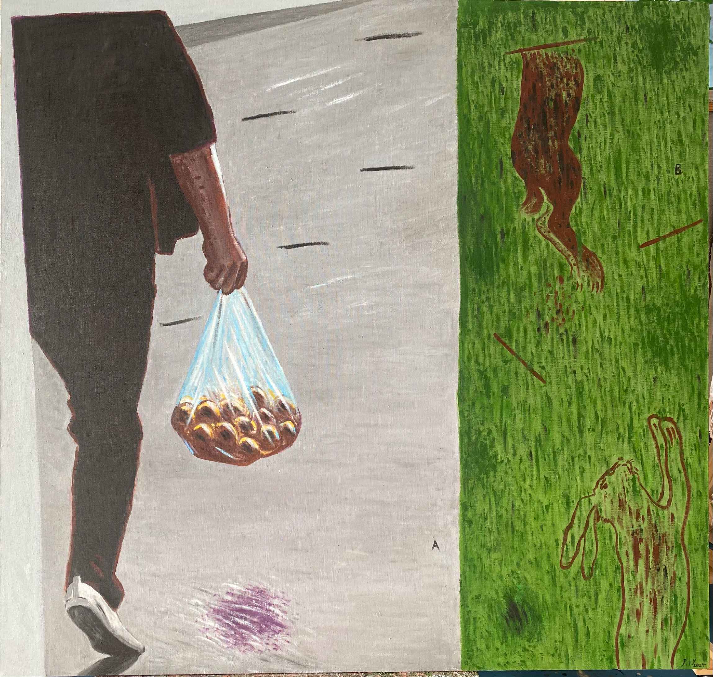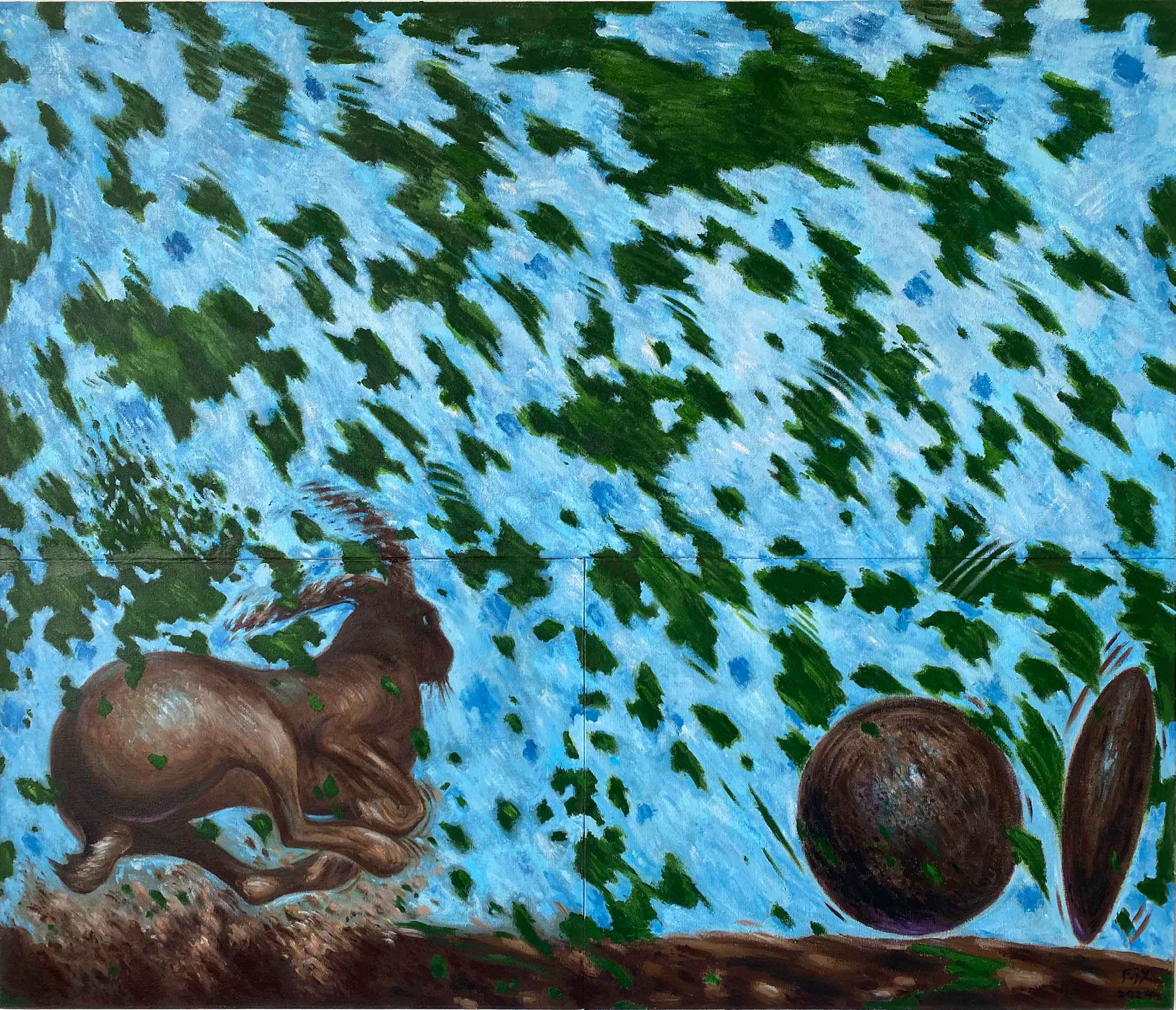 循环跑的兔子 The Rabbit Running in Circles 2024 布面油画 Oil on canvas 162×130 cm