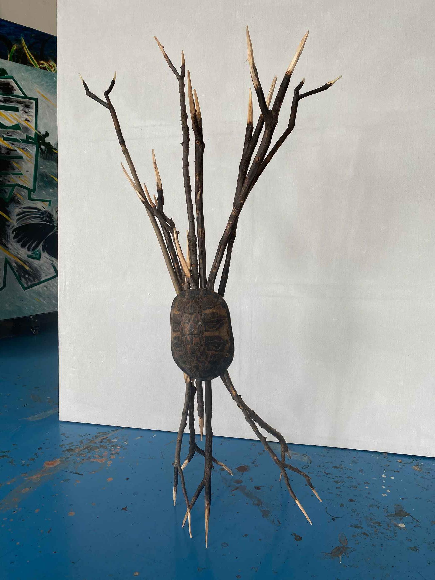 雕塑1 Sculpture 1 2024 龟壳,树丫 Tortoise shell, tree branches 尺寸可变 Dimensions variable